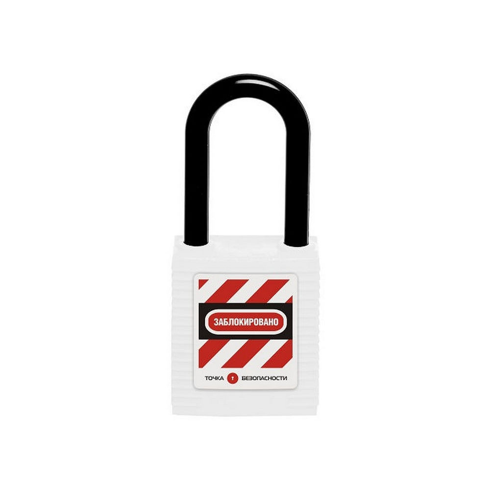 Замок блокировочный с нейлоновой дужкой, дисковый цилиндр, высота дужки – 38 мм, диаметр дужки – 6.2 мм, нейлоновый корпус, размеры корпуса – 45х38х20 мм, цвет – белый, 1 шт/упак