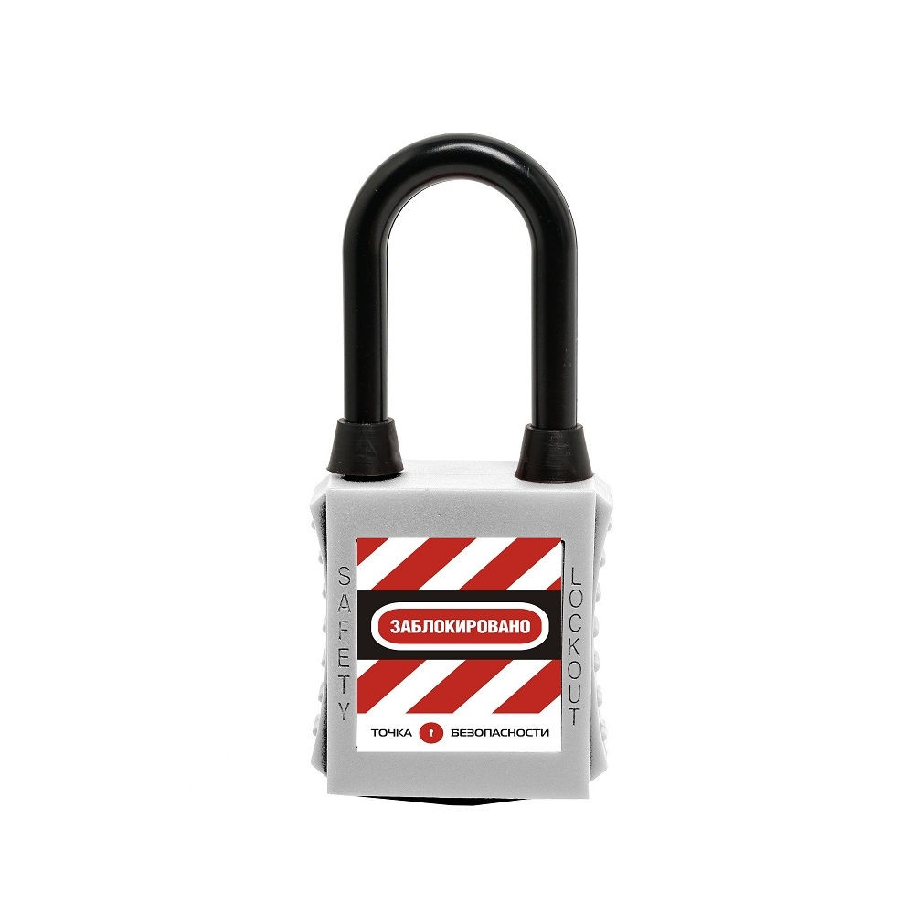 Замок блокировочный с нейлоновой дужкой и пылезащитой, дисковый цилиндр, высота дужки – 38 мм, диаметр дужки – 6.2 мм, нейлоновый корпус, размеры корпуса – 45х38х20 мм, цвет – белый, 1 шт/упак