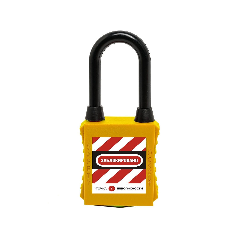Замок блокировочный с нейлоновой дужкой и пылезащитой, дисковый цилиндр, высота дужки – 38 мм, диаметр дужки – 6.2 мм, нейлоновый корпус, размеры корпуса – 45х38х20 мм, цвет – желтый, 1 шт/упак