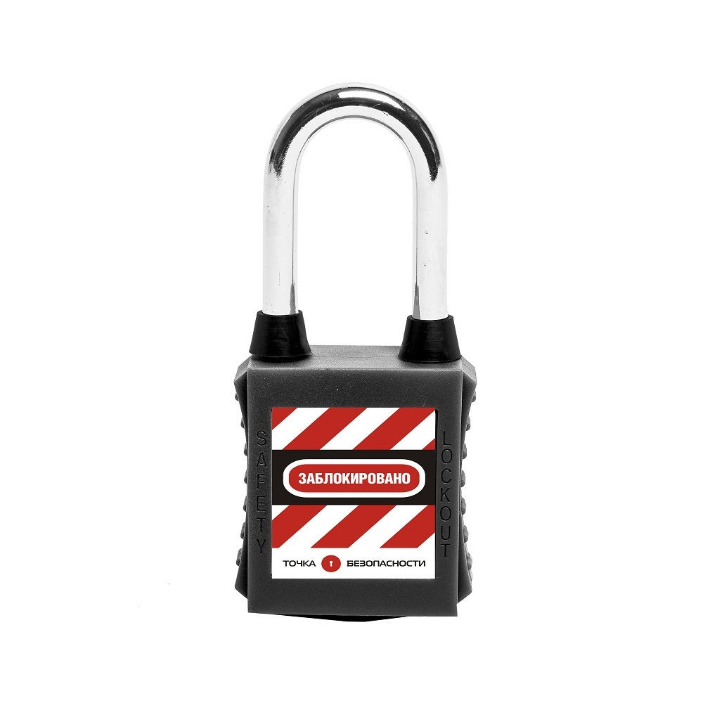 Замок блокировочный со стальной дужкой и пылезащитой, дисковый цилиндр, высота дужки – 38 мм, диаметр дужки – 6.2 мм, нейлоновый корпус, размеры корпуса – 45х38х20 мм, цвет – черный, 1 шт/упак