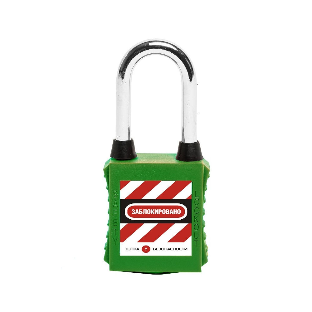 Замок блокировочный со стальной дужкой и пылезащитой, дисковый цилиндр, высота дужки – 38 мм, диаметр дужки – 6.2 мм, нейлоновый корпус, размеры корпуса – 45х38х20 мм, цвет – зелёный, 1 шт/упак