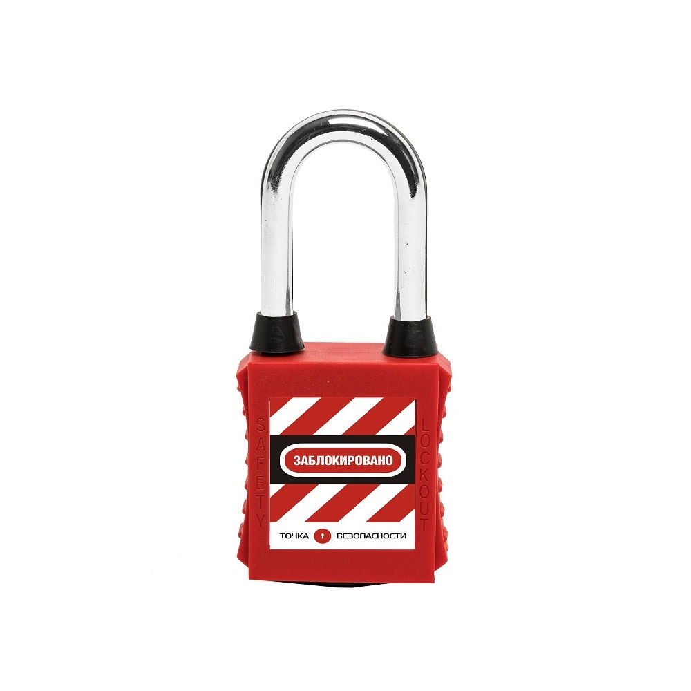 Замок блокировочный со стальной дужкой и пылезащитой, дисковый цилиндр, высота дужки – 38 мм, диаметр дужки – 6.2 мм, нейлоновый корпус, размеры корпуса – 45х38х20 мм, цвет – красный, 1 шт/упак