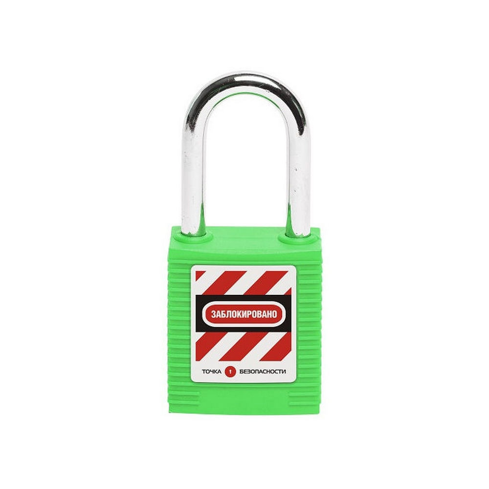 Замок блокировочный со стальной дужкой, пиновый цилиндр, высота дужки – 38 мм, диаметр дужки – 6.2 мм, нейлоновый корпус, размеры корпуса – 45х38х20 мм, цвет – зеленый, 1 шт/упак
