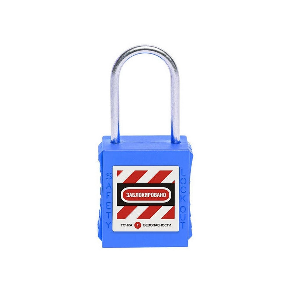 Замок блокировочный с тонкой стальной дужкой, дисковый цилиндр, высота дужки – 38 мм, диаметр дужки – 4 мм, сварной корпус из ABS-пластика, размеры корпуса – 45х40х20 мм, цвет – синий, 1 шт/упак
