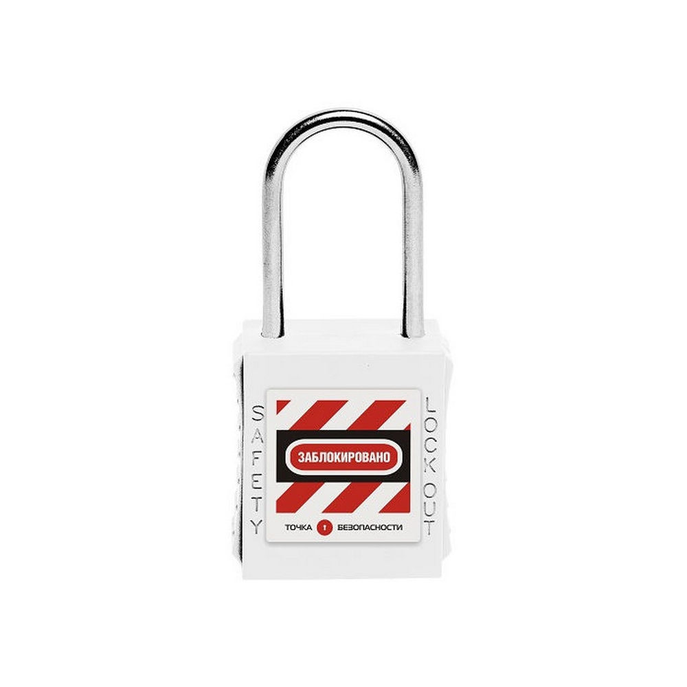 Замок блокировочный с тонкой стальной дужкой, дисковый цилиндр, высота дужки – 38 мм, диаметр дужки – 4 мм, сварной корпус из ABS-пластика, размеры корпуса – 45х40х20 мм, цвет – белый, 1 шт/упак