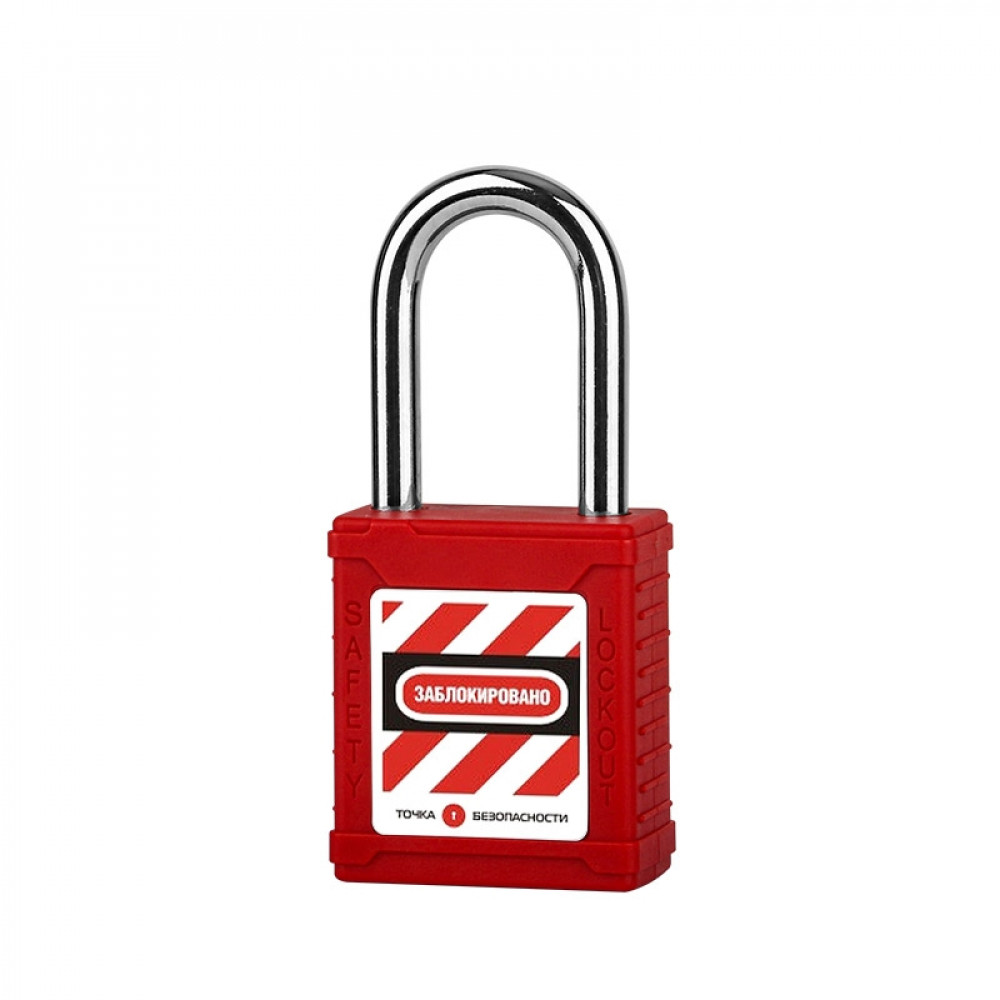 Замок блокировочный со стальной дужкой, дисковый цилиндр, высота дужки – 38 мм, диаметр дужки – 6.2 мм, сварной корпус из ABS-пластика, размеры корпуса – 45х40х20 мм, цвет – красный, 1 шт/упак