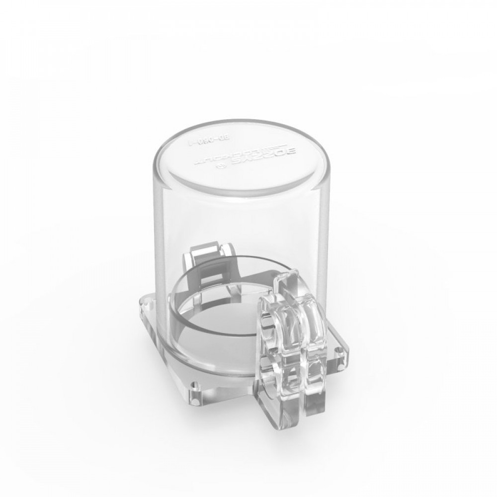 gwrD60-1, Блокиратор кнопки с квадратным основанием и круглым колпачком, поликарбонат, диаметр отверстия – 27.5 мм, 35х35х44 мм, цвет – прозрачный, 1 шт/упак