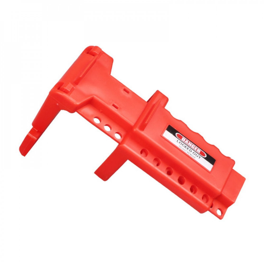 Блокиратор шарового вентиля с дополнительными фиксаторами малый удлиненный, внешний диаметр трубы – 13-70 мм, полипропилен, ширина блокируемой рукояти – 20 мм, 140х220x65 мм, цвет – красный, 1 шт/упак