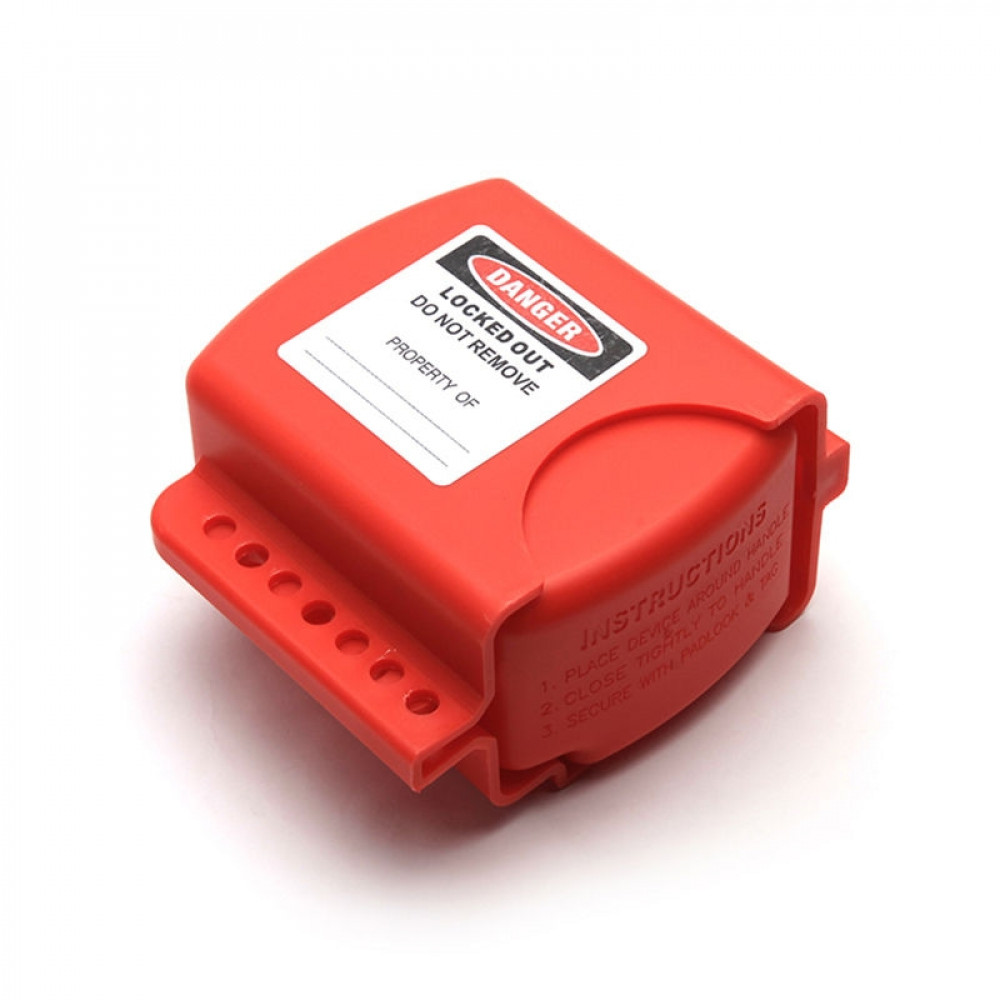 Блокиратор вентиля со съёмной рукоятью раздвижной, полипропилен, длина отверстия для шпинделя – 45-110 мм, 150х220х70 мм, цвет – красный, 1 шт/упак