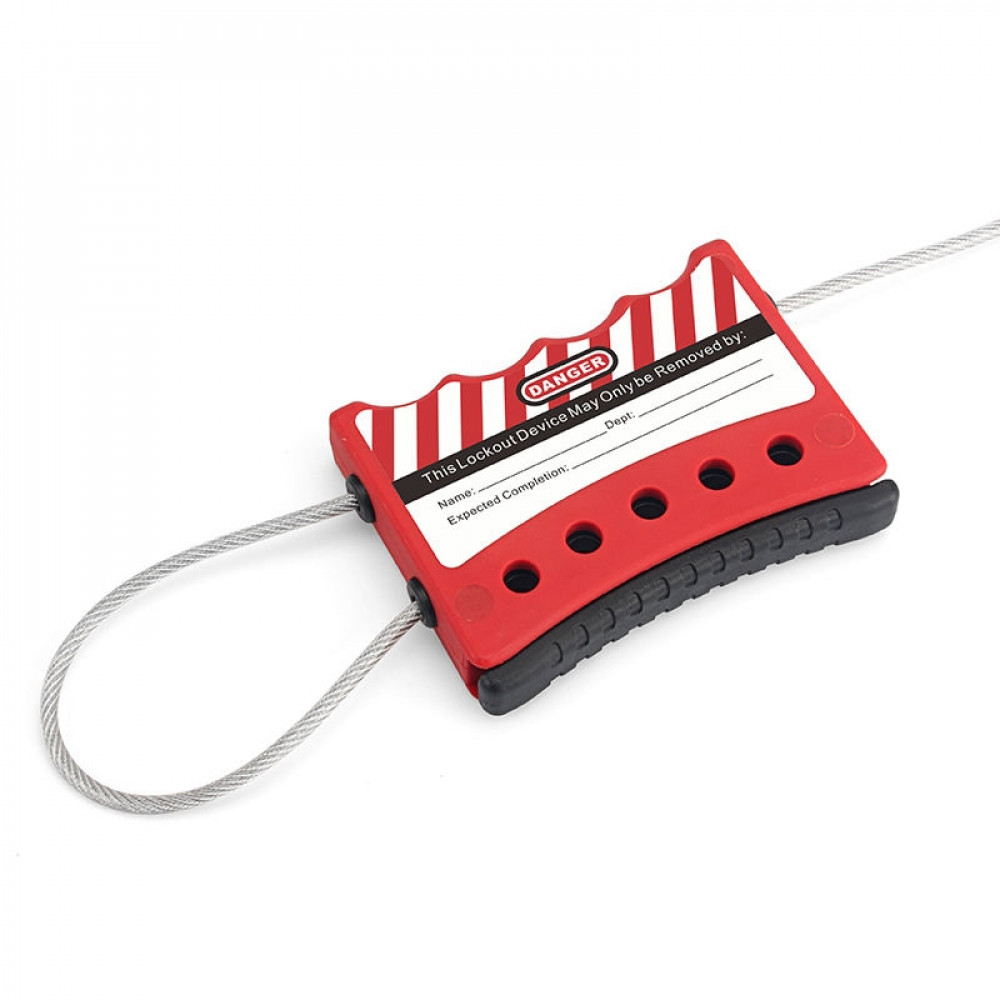 Блокиратор тросовый, стальной трос в ПВХ-оболочке, материал зажима – нейлон, длина троса – 25 м, диаметр троса – 3 мм, цвет – красный, 1 шт/упак