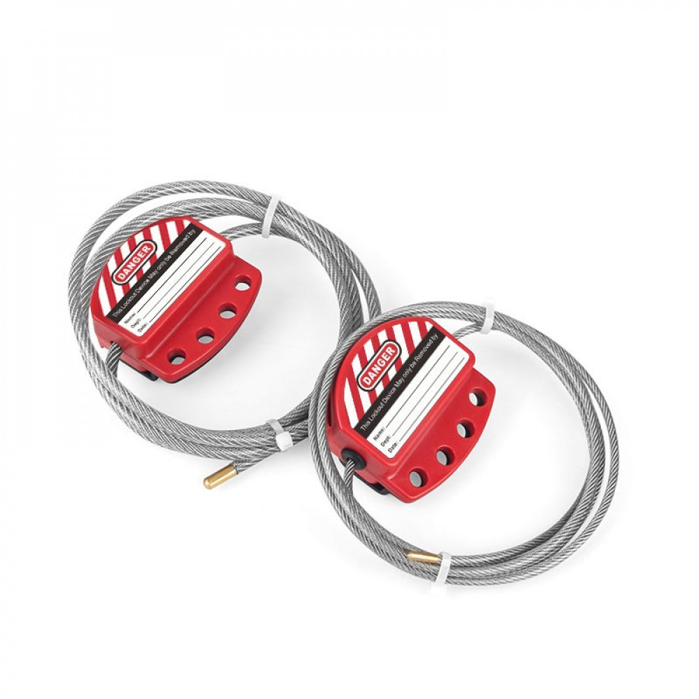 Блокиратор тросовый, стальной трос в ПВХ-оболочке, материал зажима – поликарбонат, длина троса – 1.8 м, диаметр троса – 6 мм, цвет – красный, 1 шт/упак