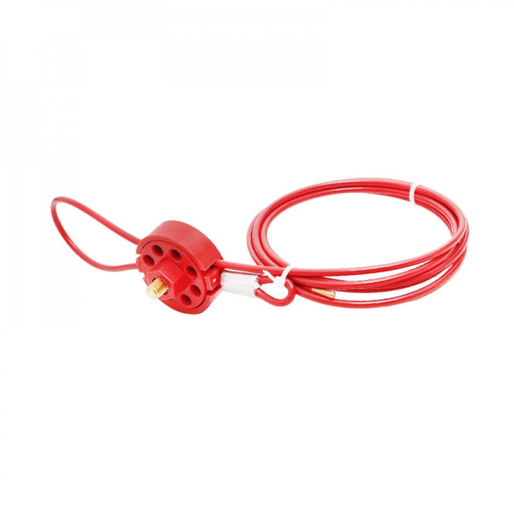 Блокиратор тросовый, стальной трос в ПВХ-оболочке, материал зажима – поликарбонат, длина троса – 2 м, диаметр троса – 4 мм, цвет – красный, 1 шт/упак