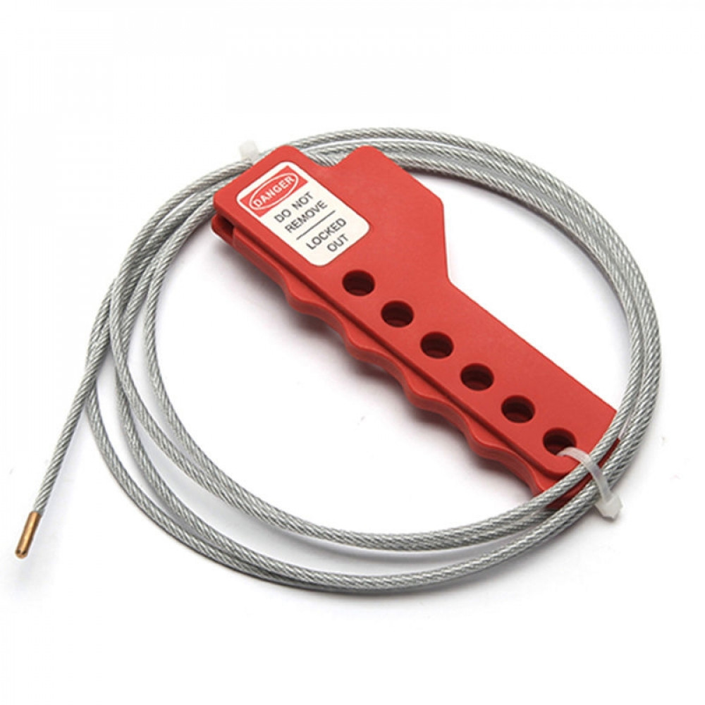 Блокиратор тросовый, стальной трос в ПВХ-оболочке, материал зажима – нейлон, длина троса – 1.8 м, диаметр троса – 3 мм, цвет – красный, 1 шт/упак