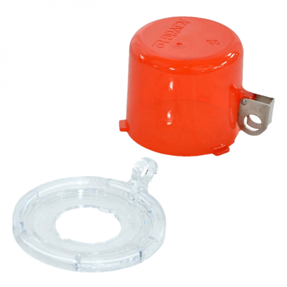 Блокиратор кнопки со съемным колпачком большой, поликарбонат, диаметр отверстия для кнопки – 31 мм, высота – 55 мм, диаметр основания – 74 мм, цвет – красный (в комплекте три наклейки: прозрачная, желтая, красная), 1 шт/упак