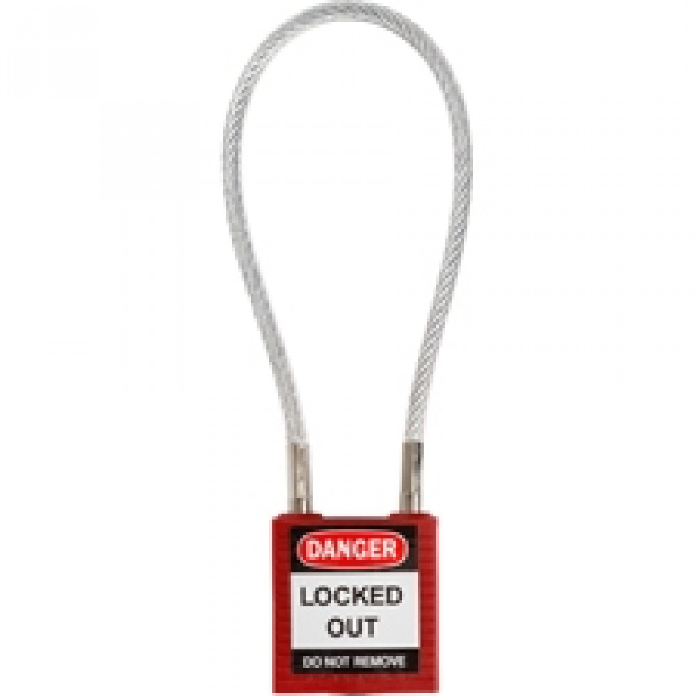 gws146120, Замок нейлоновый компактный с гибкой дужкой, дужка – стальной трос в виниловой оболочке, высота дужки – 107 мм, диаметр дужки – 4.7 мм, нейлоновый корпус, размеры корпуса – 35х32х16 мм, цвет – красный, 1 шт/упак