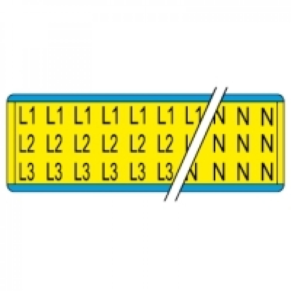 Обозначение фаз напряжения на картах, L1, L2, L3, N, желтые, 13*13 мм, 57 наклейки на карте, 25 карт в упаковке, B-500 (виниловая ткань)