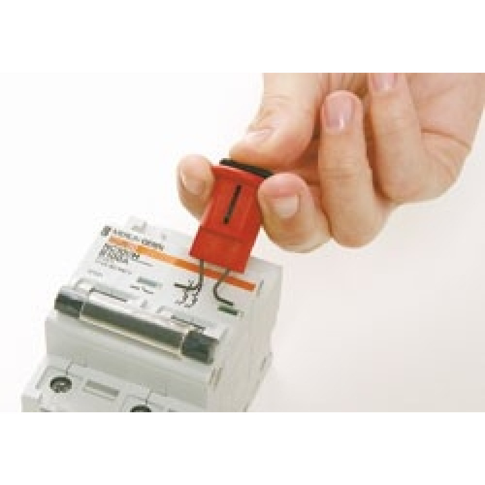 Доставка gws90851 , Блокираторы полюсных автоматов POW, нейлон и сталь, зажим наружу, ширина зажима – 20.2 мм, 42х24 мм, цвет – красный, 6 шт/упак