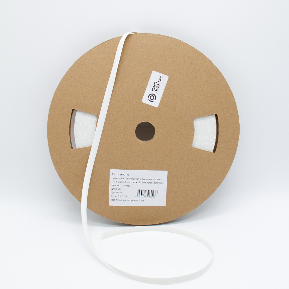 Доставка ump622136 , Термоусадочная трубка плоская для печати ТТУ-НГ-LSZH 3/1 для провода 2.3-5.5 мм, белая, в рулоне 50м. (1/4)