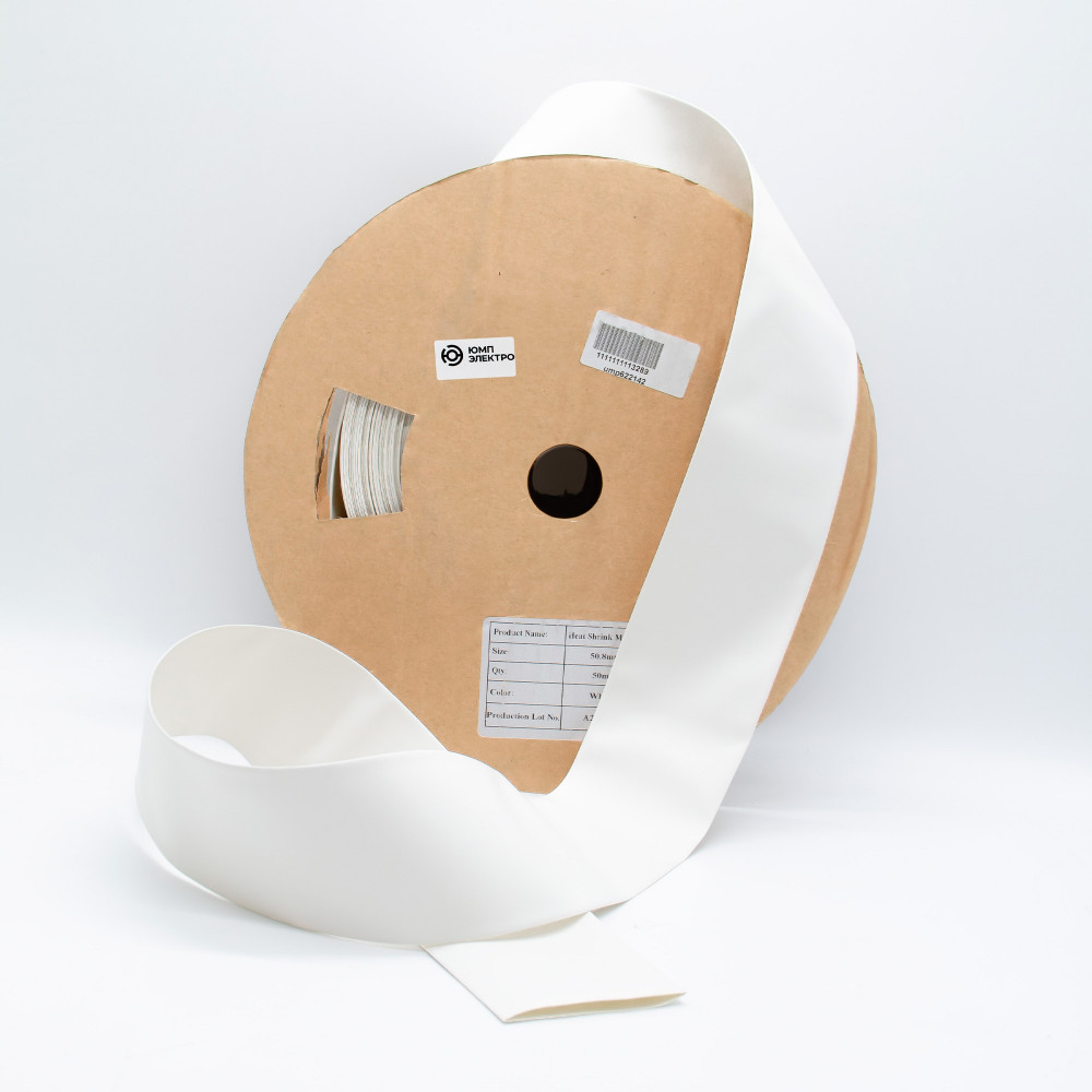Термоусадочная трубка плоская для печати ТТУ-НГ-LSZH 2/1 для провода 27.0-48.0 мм, белая, в рулоне 50м. (2)