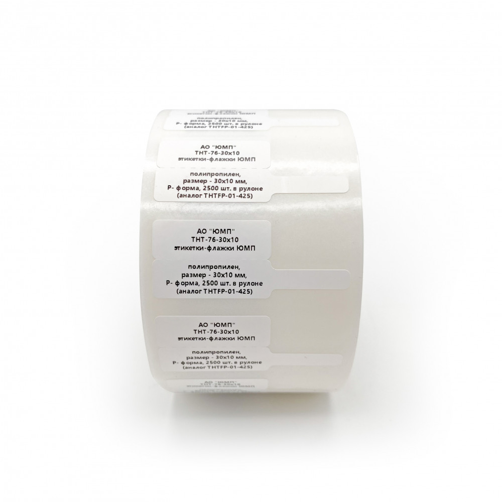 Доставка umpTPL76001 , THT-76-30x10 этикетки-флажки ЮМП, материал - полипропилен, покрытие - матовое, размер - 30х10 мм, цвет - белый, Р- форма, 2500 шт. в рулоне (аналог THTFP-01-425)