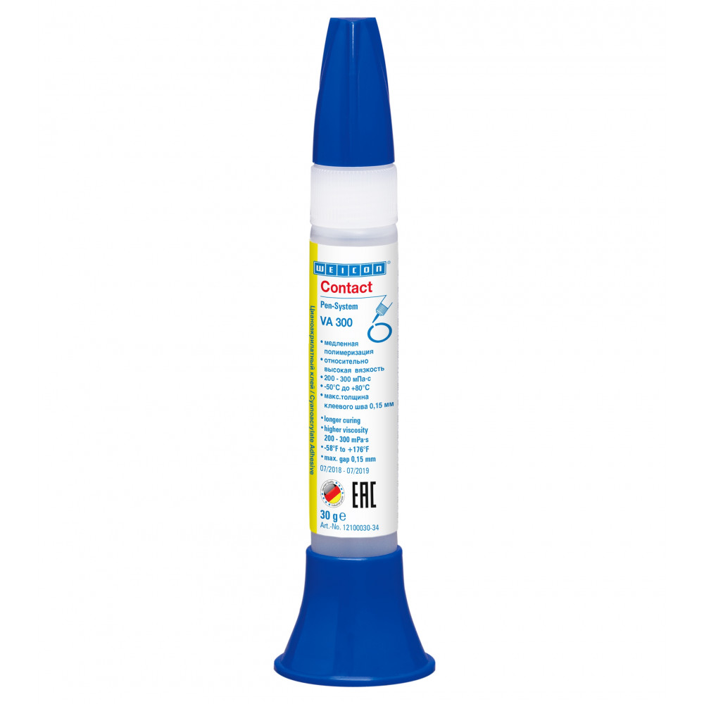 Доставка wcn12100030 , 10016510 WEICON Contact VA 300 Цианоакрилатный клей (30 г) Основа - этилат. Высокая вязкость 200-300 mPa·s. М