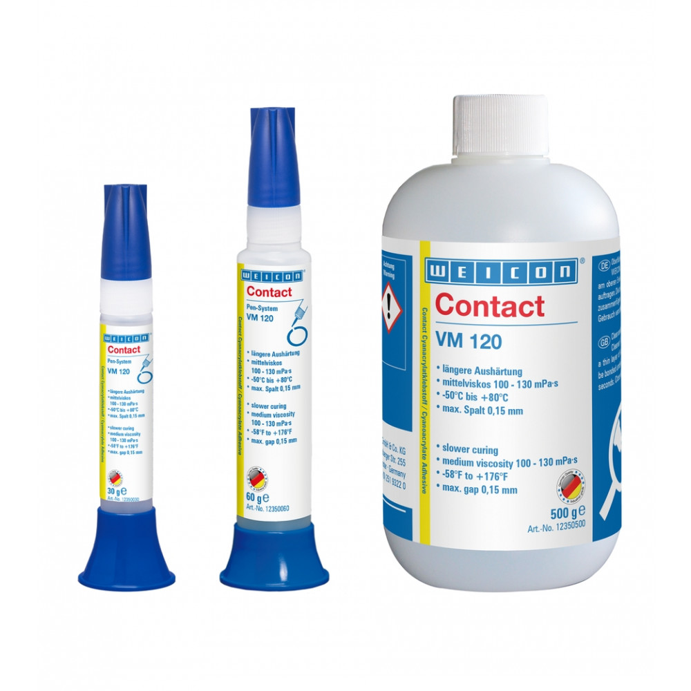 Доставка wcn12350030 , 10019859 WEICON Contact VM 120 Цианоакрилатный клей (30 г) Основа - метилат. Средняя вязкость 100-130 mPa·s.