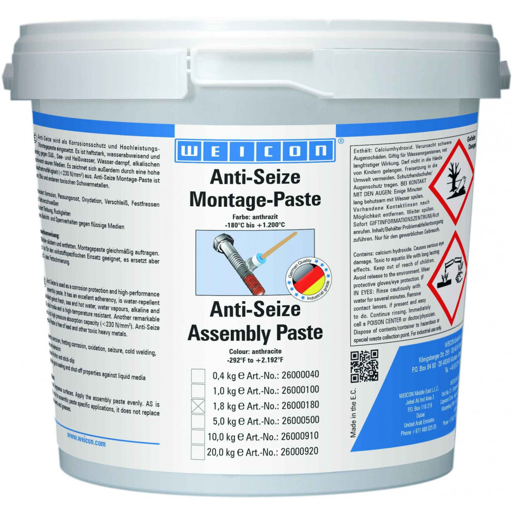 wcn26000180, 10000178 WEICON Anti-Seize Монтажная паста (1,8 кг) Защита от коррозии и высокопроизводительное смазывающее с