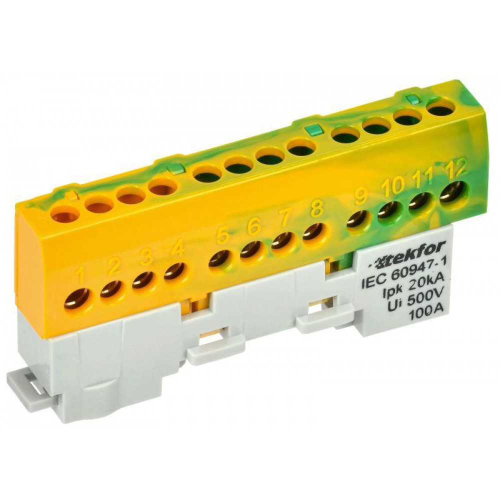 TEKFOR Шина PE земля изолированная на универсальном держателе 6х9-12-ЖЗ IEK TF-NN10-12-KL-K52, Блок клеммный и нулевая шина