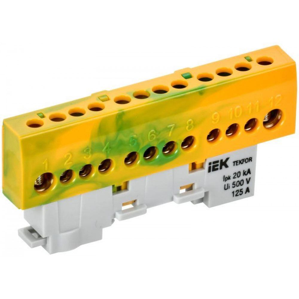 TEKFOR Шина PE земля изолированная на универсальном держателе 8х12-12-ЖЗ IEK TF-NN20-12-KL-K52, Блок клеммный и нулевая шина