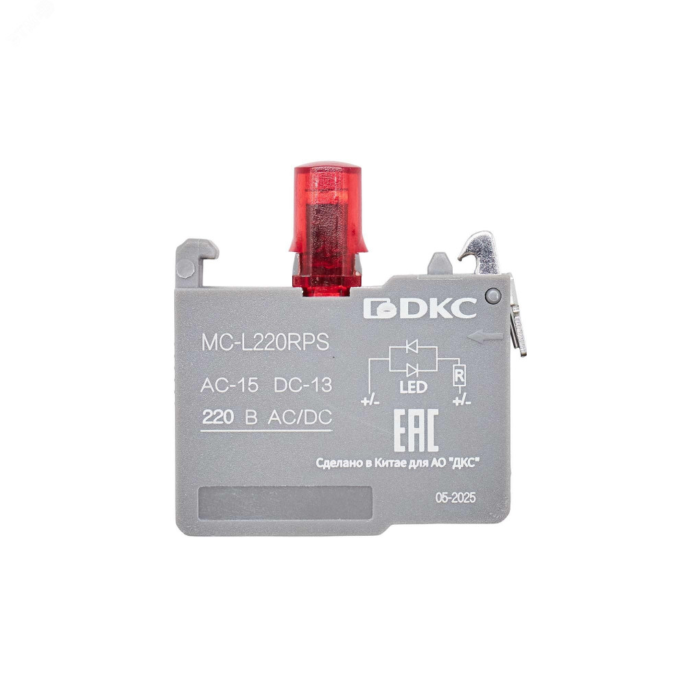 Контактный блок с клеммными зажимами под винт со светодиодом на 220В, красный MC-L220RPS, Аксессуар для поста кнопочного и светосигнальной арматуры