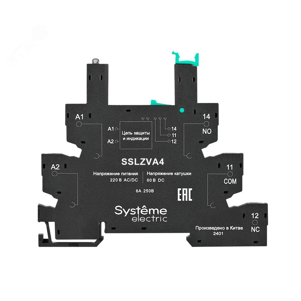 Описание Розетка 230В AC/DC для реле интерфейсного 60В DC, винтовой зажим SSLZVA4