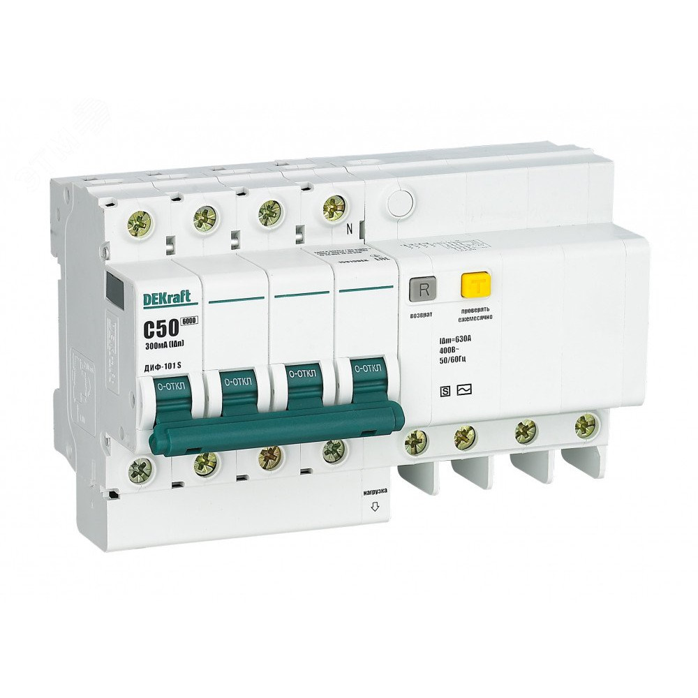 Выключатель автоматический дифференциального тока (АВДТ) 4P 50A 300мА AC-S селективный ДИФ-101 S 15318DEK, Дифференциальная защита: УЗО, дифф блок